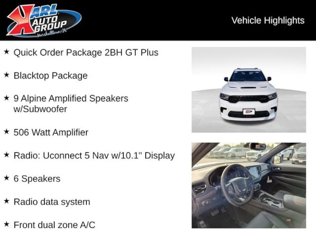 When you buy a new car at Karl or Marshalltown you know you're finding a vehicle you can rely on. We have a great selection of new vehicles for you to test drive around Newton and Des Moines, IA. We also pride ourselves in creating a friendly atmosphere and reliable new car dealership that you can trust. Call us with any questions about our 2026 Dodge Durango and our experts will be glad to help you! (641) 752-7101. *Equipment and options are generated by a 3rd party vendor, exact vehicle options may vary. Please see a salesperson for complete details and vehicle information. Price includes: $1000 - 2026 Midwest BC Bonus Cash . Exp. 11/03/2025 $1000 - 2026 National Engine Retail Bonus Cash . Exp. 11/03/2025