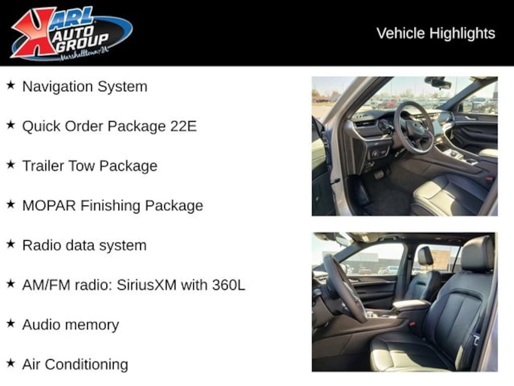 When you buy a new car at Karl or Marshalltown you know you're finding a vehicle you can rely on. We have a great selection of new vehicles for you to test drive around Newton and Des Moines, IA. We also pride ourselves in creating a friendly atmosphere and reliable new car dealership that you can trust. Call us with any questions about our 2025 Jeep Grand Cherokee L and our experts will be glad to help you! (641) 752-7101. *Equipment and options are generated by a 3rd party vendor, exact vehicle options may vary. Please see a salesperson for complete details and vehicle information.