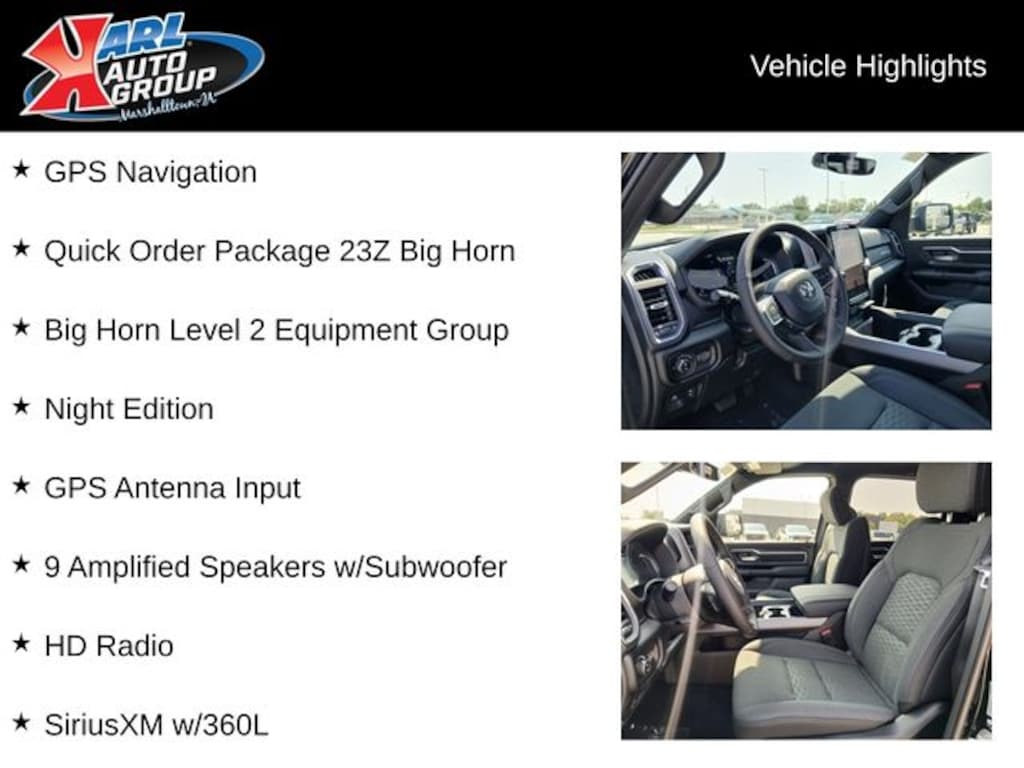When you buy a new car at Karl or Marshalltown you know you're finding a vehicle you can rely on. We have a great selection of new vehicles for you to test drive around Newton and Des Moines, IA. We also pride ourselves in creating a friendly atmosphere and reliable new car dealership that you can trust. Call us with any questions about our 2025 Ram 1500 and our experts will be glad to help you! (641) 752-7101. *Equipment and options are generated by a 3rd party vendor, exact vehicle options may vary. Please see a salesperson for complete details and vehicle information. Price includes: $750 - 2025 Midwest BC Regional Bonus Cash. Exp. 11/03/2025 10% Msrp - 2025 National 10% Below MSRP . Exp. 11/03/2025