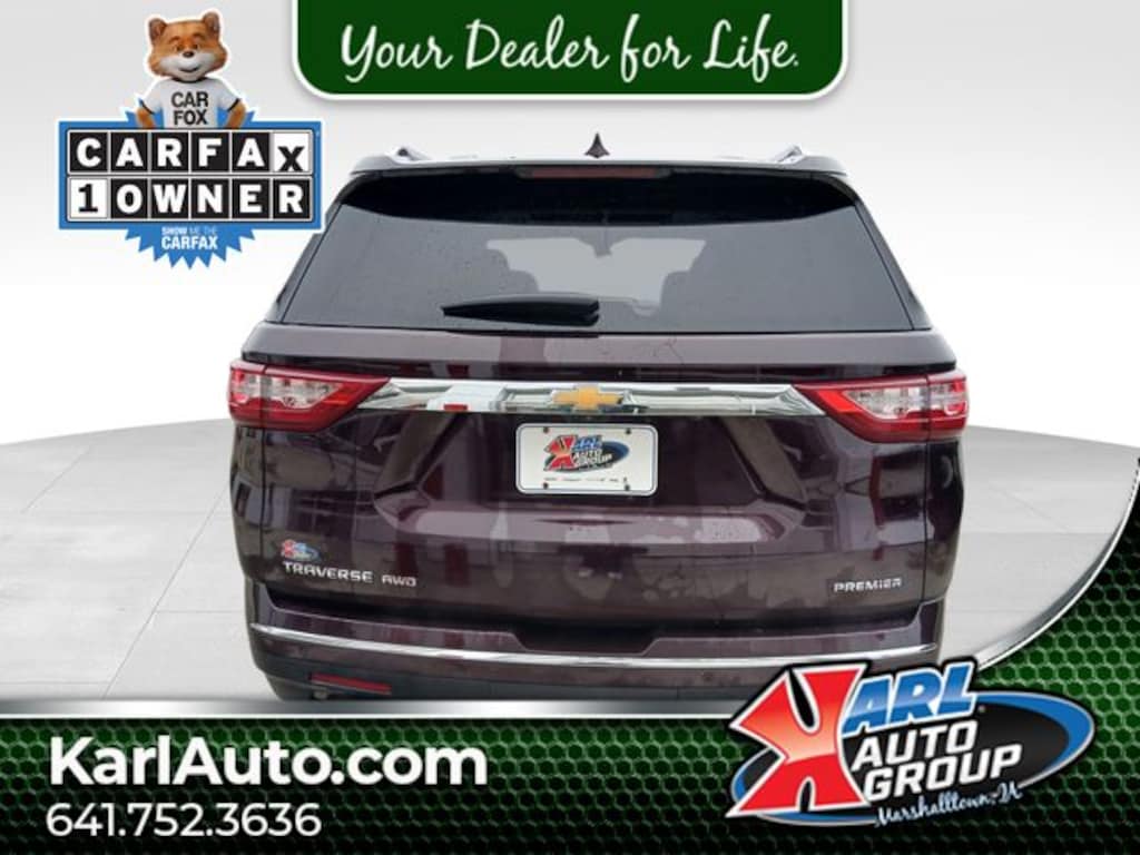 Recent Arrival! Odometer is 19356 miles below market average! Certified. CARFAX One-Owner. Clean CARFAX. Black Currant Metallic 2019 Chevrolet Traverse 4D Sport Utility Premier 3.6L V6 SIDI VVT 17/25 City/Highway MPG 9-Speed Automatic AWD, Chrome Essentials Package (LPO), Chrome Mirror Caps, Front License Plate Bracket Mounting Package, Heavy-Duty Cooling System, Preferred Equipment Group 1LZ, Stainless Steel Door Sill Plates (LPO), Trailering Equipment.