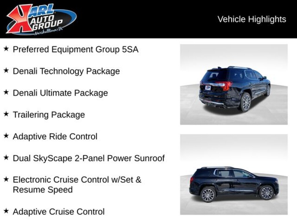 Recent Arrival! Odometer is 17338 miles below market average! Certified. CARFAX One-Owner. Clean CARFAX. Ebony Twilight Metallic 2021 GMC Acadia 4D Sport Utility Denali 3.6L V6 SIDI 19/26 City/Highway MPG 9-Speed Automatic AWD, Jet Black Leather, 170 Amp Alternator, Adaptive Cruise Control, Adaptive Ride Control, Denali Technology Package, Denali Ultimate Package, Dual SkyScape 2-Panel Power Sunroof, Electronic Cruise Control w/Set & Resume Speed, Enhanced Automatic Emergency Braking, HD Surround Vision, Heavy-Duty Cooling System, Hitch Guidance w/Hitch View, Performance Ride & Handling Suspension, Preferred Equipment Group 5SA, Rear Camera Mirror, Rear Camera Mirror Washer, Trailering Assist Guidelines, Trailering Package.