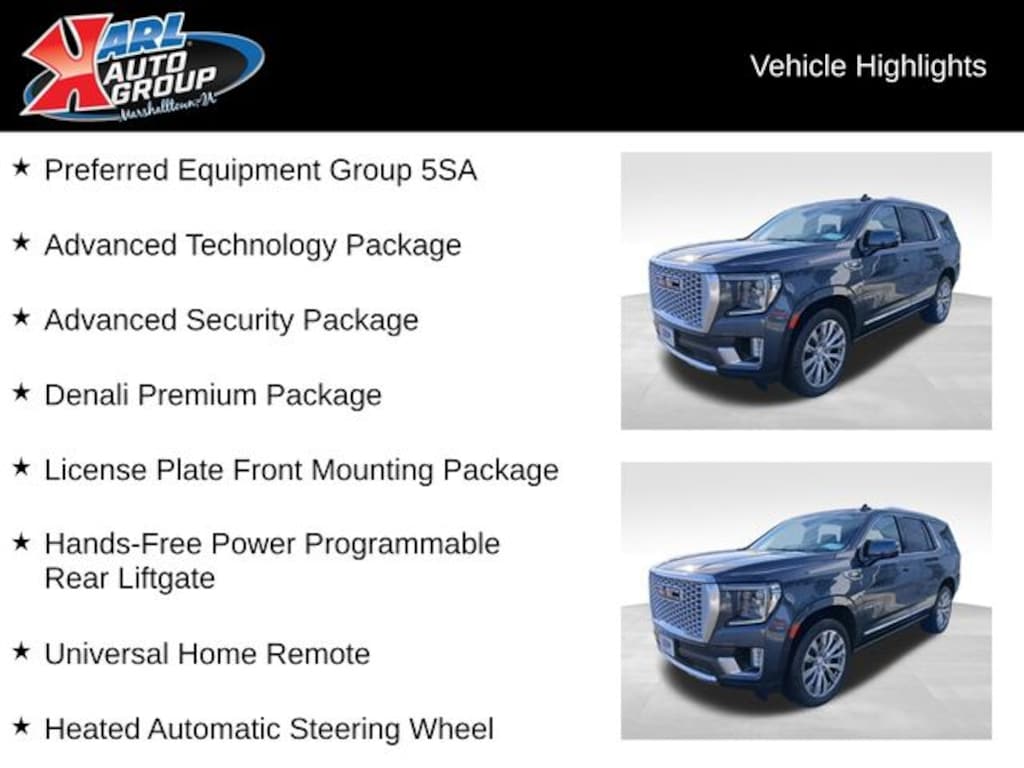 Recent Arrival! Odometer is 34809 miles below market average! Certified. CARFAX One-Owner. Dark Sky Metallic 2021 GMC Yukon 4D Sport Utility Denali EcoTec3 6.2L V8 10-Speed Automatic with Overdrive 4WD, 12-Way Power Seat Adjusters, 15" Diagonal Multi-Color Head-Up Display, 2 Presets For Outside Rearview Mirrors, 3rd Row 60/40 Power-Folding Split-Bench Seat, Adaptive Cruise Control, Advanced Security Package, Advanced Technology Package, Bright Front & Rear Door Sill Plates, Chrome Door Handles w/Body-Color Strip, Denali Premium Package, Dual Exhaust System, Dual-Pane Panoramic Power Sunroof, Enhanced Automatic Emergency Braking, Galvano Bodyside Moldings, Glass Breakage Sensor, Hands-Free Power Programmable Rear Liftgate, HD Surround Vision, Heated & Ventilated Driver & Front Passenger Seats, Heated 2nd Row Outboard Position Seats, Heated Automatic Steering Wheel, Heated Driver & Front Passenger Seats, Hill Descent Control, Inside Rear-View Auto-Dimming Mirror, Inside Rearview Auto-Dimming Rear Camera Mirror, License Plate Front Mounting Package, Outside Heated Power-Adjustable Mirrors, Power Release 2nd Row Bucket Seats, Power Tilt & Telescopic Steering Column, Power-Retractable Assist Steps, Preferred Equipment Group 5SA, Rear Camera Mirror Washer, Rear Pedestrian Alert, Safety Alert Seat, Theft-Deterrent Alarm System, Universal Home Remote, Vehicle Inclination Sensor, Vehicle Interior Movement Sensor.