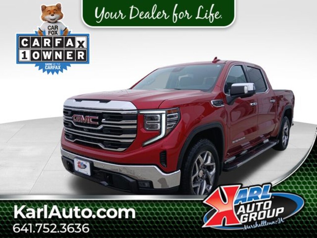 Odometer is 14976 miles below market average! CARFAX One-Owner. Clean CARFAX. Volcanic Red Tintcoat 2023 GMC Sierra 1500 4D Crew Cab SLT EcoTec3 5.3L V8 16/20 City/Highway MPG 10-Speed Automatic 4WD