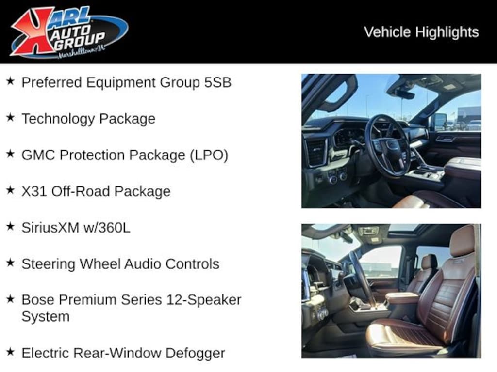 Recent Arrival! Certified. CARFAX One-Owner. Clean CARFAX. Onyx Black 2024 GMC Sierra 3500HD 4D Crew Cab Denali Ultimate Duramax 6.6L V8 Turbodiesel 10-Speed Automatic 4WD, Alpine Umber Leather, 120-Volt Bed Mounted Power Outlet, 120-Volt Instrument Panel Power Outlet, 2 Charge-Only Rear USB Ports, 2 Charge/Data USB Ports Inside Center Console, 2 USB Ports, 2-Speed Active Transfer Case, All-Weather Floor Liners (LPO), Auto-Dimming Inside Rearview Mirror w/Camera, Bed View Camera w/2 Trailer Camera Provisions, Black Front & Rear Molded Splash Guards (LPO), Bose Premium Series 12-Speaker System, Deep-Tinted Glass, Electric Rear-Window Defogger, Floor-Mounted Center Console, Front Rain-Sensing Wipers, GMC Protection Package (LPO), HD Surround Vision, Heated 2nd Row Outboard Seats, Heated Driver & Front Outboard Passenger Seats, Hill Descent Control, Hitch Guidance w/Hitch View, In-Vehicle Trailering App, Integrated Trailer Brake Controller, Keyless Open & Start, LED Cargo Area Lighting, LED Smoked Amber Roof Marker Lamps, Manual Tilt-Wheel/Telescoping Steering Column, Multicolor 15" Diagonal Head-Up Display, Power Front Windows w/Passenger Express Up/Down, Power Sliding Rear Window w/Defogger, Power Sunroof, Preferred Equipment Group 5SB, ProGrade Trailering System, Push Button Start, Rear Cross Traffic Alert, Rear Wheelhouse Liners, Remote Vehicle Starter System, Safety Alert Seat, Signature Denali Grille in Vader Chrome, SiriusXM w/360L, Spray-On Pickup Bedliner w/Denali Logo, Steering Wheel Audio Controls, Technology Package, Trailer Camera Provisions, Trailer Side Blind Zone Alert, Trailer Tire Pressure Monitor Sensors, Ultrasonic Front & Rear Park Assist, Unauthorized Entry Theft-Deterrent System, Universal Home Remote, Ventilated Driver & Front Passenger Seats, Wireless Charging, Wireless Phone Projection, X31 Off-Road Package.