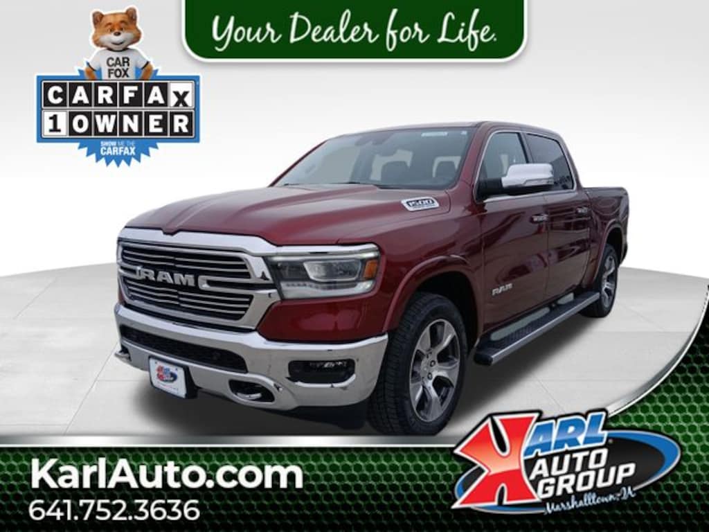 Recent Arrival! CARFAX One-Owner. Delmonico Red Pearlcoat 2022 Ram 1500 4D Crew Cab Laramie HEMI 5.7L V8 Multi Displacement VVT 15/21 City/Highway MPG 8-Speed Automatic 4WD