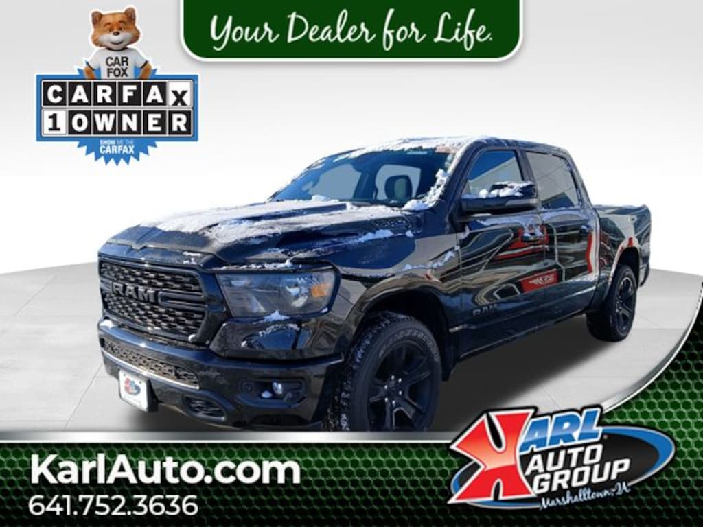 Recent Arrival! CARFAX One-Owner. Diamond Black Crystal Pearlcoat 2023 Ram 1500 4D Crew Cab Big Horn/Lone Star HEMI 5.7L V8 Multi Displacement VVT eTorque 17/22 City/Highway MPG 8-Speed Automatic 4WD